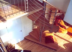 mit Edelstahlmantel und riegelverleimten Massivholzstufen, Steiggeländer aus